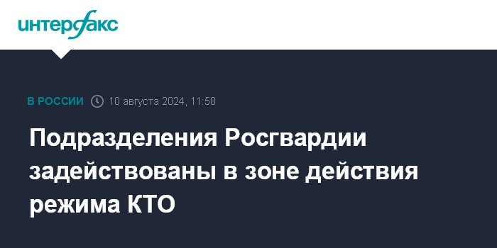 Москва. 10 августа. INTERFAX.RU - Подразделения Росгвардии задействованы в обеспечении безопасности, в том числе особо важных государственных объектов в приграничных регионах, где ранее был введен режим контртеррористической операции (КТО), сообщили в ведомстве.