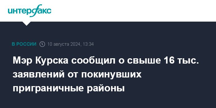 Мэр Курска сообщил о свыше 16 тыс. заявлений от покинувших приграничные районы