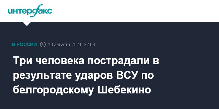Москва. 10 августа. INTERFAX.RU - Губернатор Белгородской области Вячеслав Гладков сообщил, что город Шебекино подвергся в субботу обстрелам со стороны ВСУ, есть трое пострадавших.