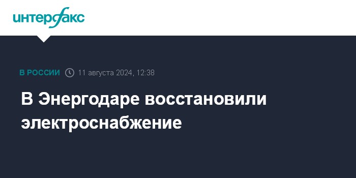 Москва. 11 августа. INTERFAX.RU - Специалисты восстановили электроснабжение Энергодара (Запорожская область), нарушенное после атаки ВСУ, сообщил в воскресенье глава администрации города Эдуард Сеновоз.