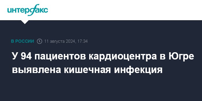 Москва. 11 августа. INTERFAX.RU - Власти ХМАО-Югры проводят проверку по поводу выявления симптомов пищевой инфекции у 94 пациентов Центра диагностики и сердечно-сосудистой хирургии, сообщается на сайте окружного департамента здравоохранения.