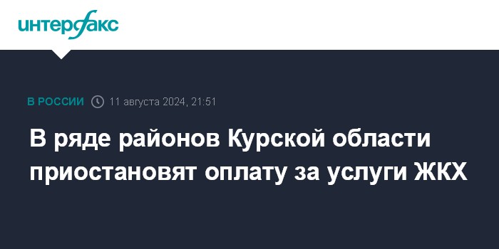"В связи с введением на территории Курской области режима контртеррористической операции оперативным штабом принято решение о приостановке с августа текущего года начисления платы за коммунальные услуги и жилые помещения в ряде районов региона", - сообщается в телеграм-канале правительства региона.