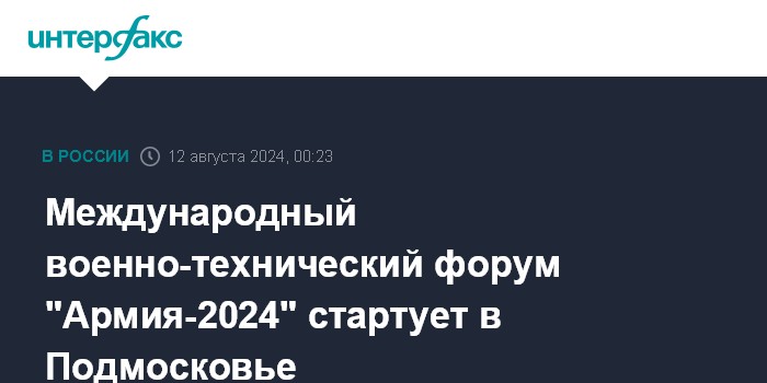 Москва. 12 августа. INTERFAX.RU - Международный военно-технический форум (МВТФ) "Армия-2024" начинает работу в понедельник, он пройдет с 12 по 14 августа в военно-патриотическом парке культуры и отдыха Вооруженных сил РФ "Патриот" (Московская область).