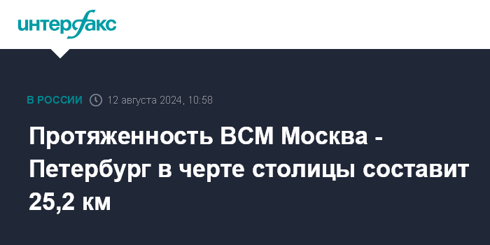 Москва. 12 августа. INTERFAX.RU - Длина высокоскоростной железнодорожной магистрали Москва - Санкт-Петербург в черте столицы составит 25,2 км, остановочными пунктами станут четыре городских вокзала, сообщает пресс-служба градостроительного комплекса Москвы.
