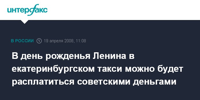 Екатеринбург. 19 апреля. ИНТЕРФАКС-УРАЛ - Одна из екатеринбургских служб такси в день рождения вождя мирового пролетариата Владимира Ленина решила сделать подарок всем своим клиентам: к оплате в этот день будут принимать банкноты советского образца.