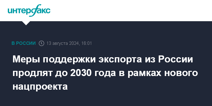 Меры поддержки экспорта из России продлят до 2030 года в рамках нового нацпроекта