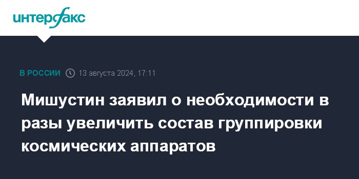 Москва. 13 августа. INTERFAX.RU - Россия в разы нарастит состав орбитальной группировки космических аппаратов, заявил премьер-министр РФ Михаил Мишустин.