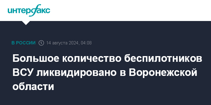 Москва. 14 августа. INTERFAX.RU - Губернатор Воронежской области Александр Гусев сообщил в ночь на среду, что в регионе продолжается уничтожение украинских беспилотников.