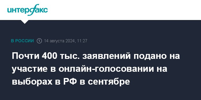 Почти 400 тыс. заявлений подано на участие в онлайн-голосовании на выборах в РФ в сентябре