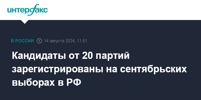 Кандидаты от 20 партий зарегистрированы на сентябрьских выборах в РФ