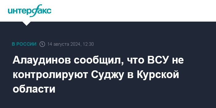 Москва. 14 августа. INTERFAX.RU - Украинские формирования не установили контроль над населенным пунктом Суджа в Курской области, сообщил заместитель начальника главного военно-политического управления Вооруженных сил РФ Апты Алаудинов, который командует спецназом "Ахмат".