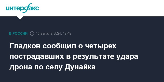 Гладков сообщил о четырех пострадавших в результате удара дрона по селу Дунайка