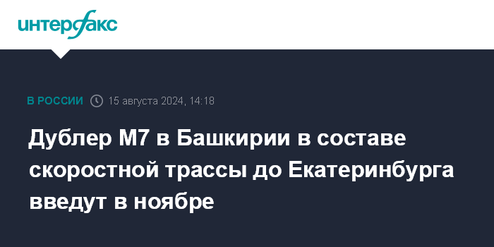 "Строительство 65-километрового объекта в Республике Башкортостан обрело новый глобальный смысл – дорога станет скоростным коридором и соединит европейскую часть России с Прикамьем и Уралом. Трасса будет крайне востребована не только для жителей региона, но и всей страны. Благодаря высокому темпу работ запустить движение по четырем полосам планируется уже в ноябре этого года, синхронно с открытием многофункциональных зон дорожного сервиса", - сказал Новиков в ходе рабочей поездки в Башкирию в четверг.