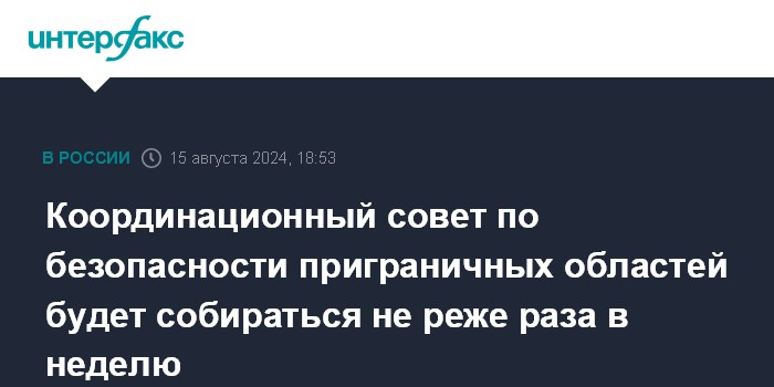 Москва. 15 августа. INTERFAX.RU -- Заседание Координационного совета по вопросам военной безопасности приграничных территорий Белгородской, Брянской и Курской областей провёл министр обороны РФ Андрей Белоусов, сообщило российское военное ведомство.