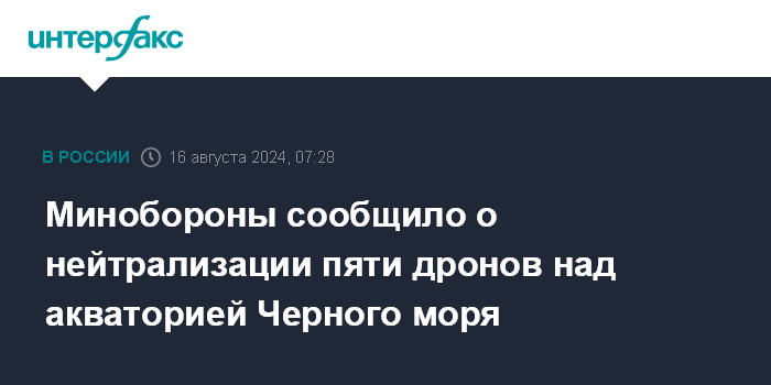 Минобороны сообщило о нейтрализации пяти дронов над акваторией Черного моря