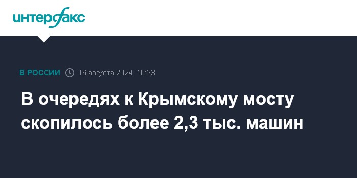 Москва. 16 августа. INTERFAX.RU - Проезда через досмотровые пункты на Крымском мосту утром в пятницу ожидают более 2,3 тыс. автомобилей, сообщается в телеграм-канале, освещающем ситуацию на автомобильных подходах к мосту.
