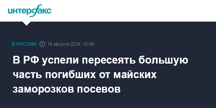 В РФ успели пересеять большую часть погибших от майских заморозков посевов