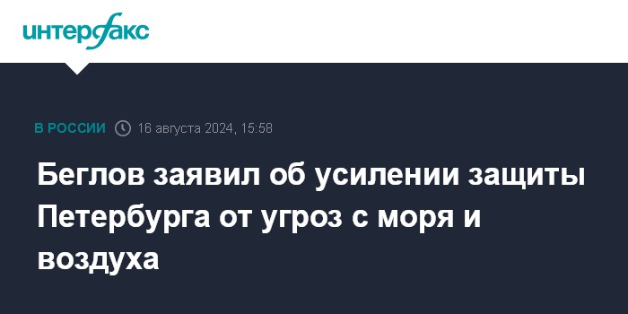 Москва. 16 августа. INTERFAX.RU - Работа над усилением мер безопасности от воздушных угроз ведется в Санкт-Петербурге, сообщил губернатор Александр Беглов в пятницу.