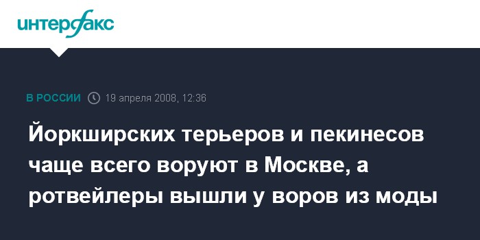 Йоркширских терьеров и пекинесов чаще всего воруют в Москве, а ротвейлеры вышли у воров из моды