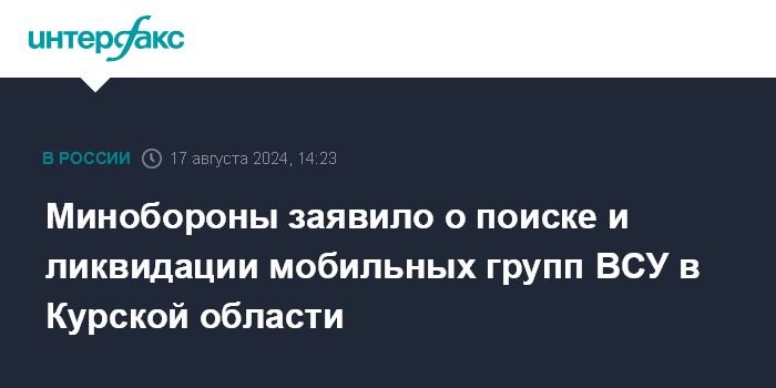 Москва. 17 августа. INTERFAX.RU - Российские военные заявили, что в лесах на курском направлении идет поиск и ликвидация украинских мобильных групп, которые пытались проникнуть вглубь территории РФ.