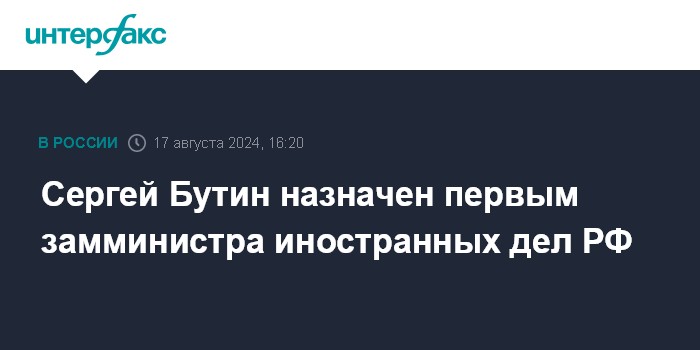 Москва. 17 августа. INTERFAX.RU - Президент России Владимир Путин подписал указ о назначении Сергея Бутина первым замминистра иностранных дел РФ.