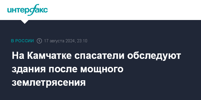 Москва. 17 августа. INTERFAX.RU - Спасатели на юге Камчатки выясняют, пострадали ли в результате семибалльного землетрясения здания и сооружения, сообщает главное управление МЧС России по Камчатскому краю в воскресенье.