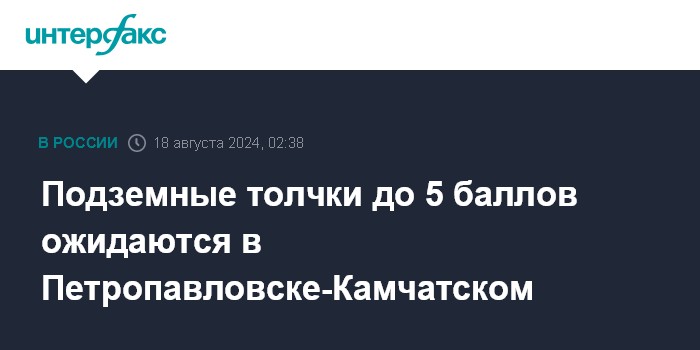 Москва. 18 августа. INTERFAX.RU - В ближайшие дни стоит ожидать достаточно сильных отчетливых сотрясений в Петропавловске-Камчатском с интенсивностью до пяти баллов, сообщил директор камчатского филиала федерального исследовательского центра "Единая геофизическая служба РАН" Данила Чебров.