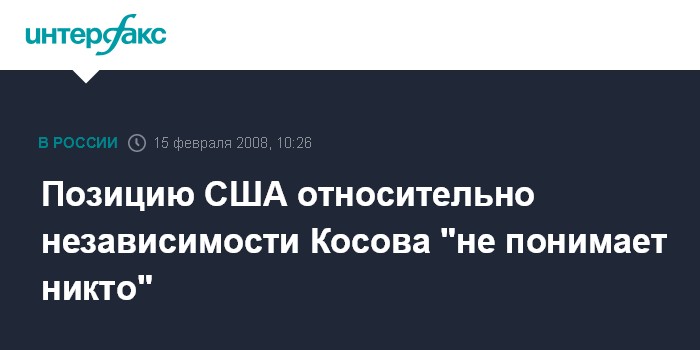 Позицию США относительно независимости Косова "не понимает никто"