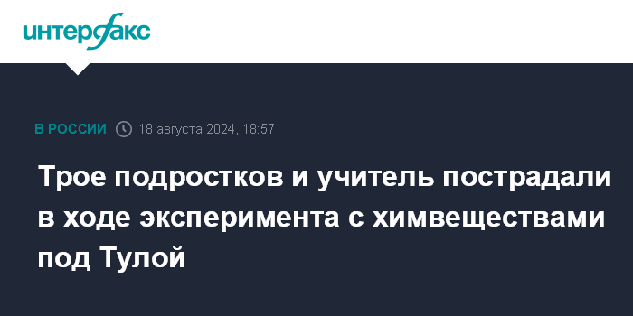 Трое подростков и учитель пострадали в ходе эксперимента с химвеществами под Тулой