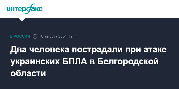 Москва. 18 августа. INTERFAX.RU - Губернатор Белгородской области Вячеслав Гладков сообщил об атаке украинских дронов на территории региона, в результате чего пострадали два человека.