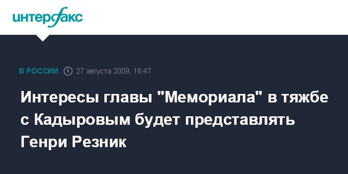 Москва. 27 августа. INTERFAX.RU - Интересы руководителя правозащитного центра "Мемориал" Олега Орлова в связи с обращением в правоохранительные органы президента Чеченской республики Рамзана Кадырова будет представлять глава адвокатской палаты Москвы Генри Резник. Об этом "Интерфаксу" заявил сам Орлов в пятницу.
