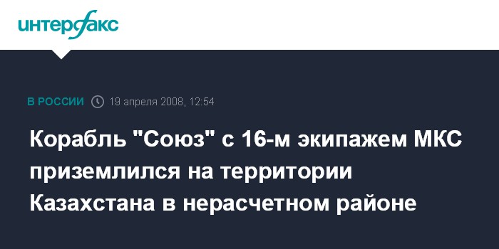 Корабль "Союз" с 16-м экипажем МКС приземлился на территории Казахстана в нерасчетном районе