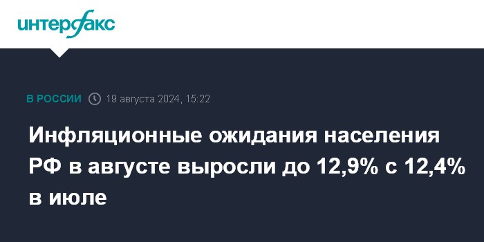 Инфляционные ожидания населения РФ в августе выросли до 12,9% с 12,4% в июле