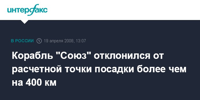 Это не первый случай, когда корабль при посадке отклоняется от расчетной точки. В октябре 2007 года при спуске корабля "Союз ТМА-10" с экипажем 15-й экспедиции в составе российских космонавтов Олега Котова и Федора Юрчихина, а также первого малайзийского космонавта Шейха Мушафара Шукора произошла нештатная ситуация - получил повреждение один из кабелей системы управления. Спуск корабля прошел по баллистической траектории. Космонавты приземлились в 70 км от запланированного места, испытав при этом перегрузки 8-9 g, а не 3-4, как обычно.
