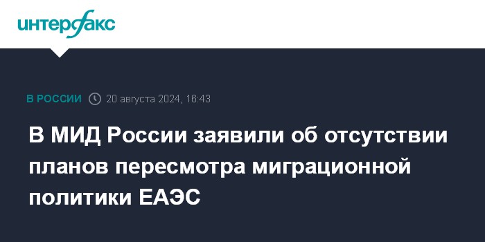 В МИД России заявили об отсутствии планов пересмотра миграционной политики ЕАЭС