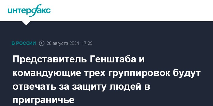Москва. 20 августа. INTERFAX.RU - Министр обороны РФ Андрей Белоусов заявил, что командующие группировок "Курск", "Белгород" и "Брянск", а также представители Генштаба ВС РФ будут отвечать за вопросы обеспечения безопасности населения в рамках Координационного совета по ситуации в приграничных регионах.