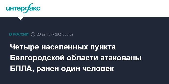 Четыре населенных пункта Белгородской области атакованы БПЛА, ранен один человек