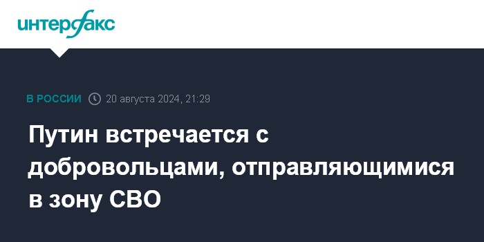 Москва. 20 августа. INTERFAX.RU - Президент РФ Владимир Путин начал встречу с добровольцами, которые проходят подготовку в Российском университете спецназа в Гудермесе и в ближайшее время отправятся в зону проведения специальной военной операции.