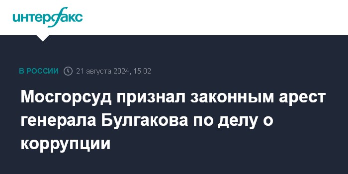 "Постановление Басманного суда Москвы от 25 июля 2024 года об избрании в отношении Булгакова меры пресечения в виде заключения под стражу сроком до 25 сентября 2024 года оставить без изменений, апелляционную жалобу адвоката - без удовлетворения", - говорится в решении суда.