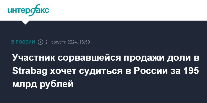 Участник сорвавшейся продажи доли в Strabag хочет судиться в России за 195 млрд рублей