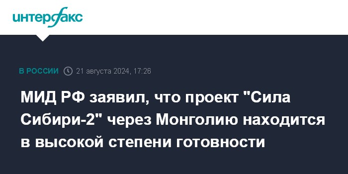 МИД РФ заявил, что проект "Сила Сибири-2" через Монголию находится в высокой степени готовности