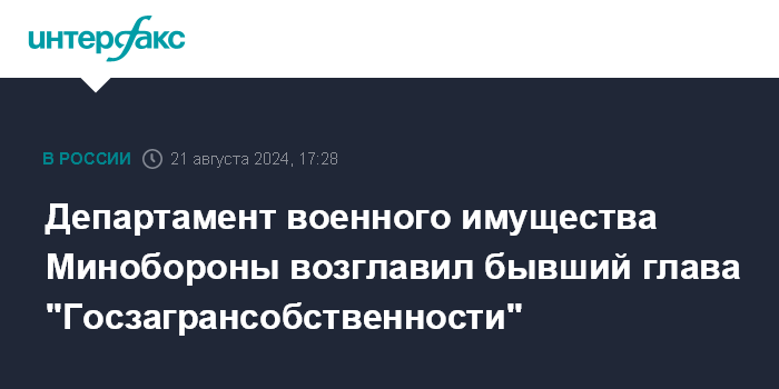 Москва. 21 августа. INTERFAX.RU - Бывший гендиректор ФГУП "Госзагрансобственность" Евгений Логвинов назначен директором департамента военного имущества Минобороны России.