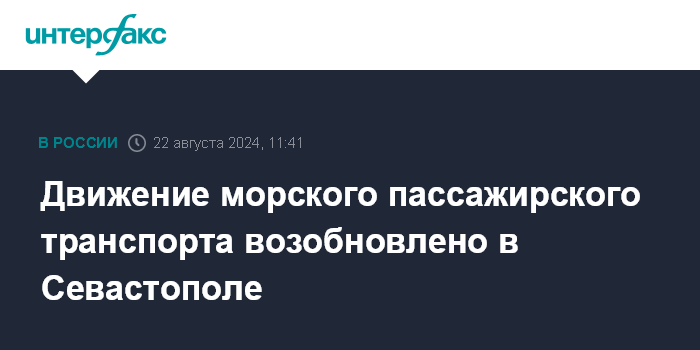Москва. 22 августа. INTERFAX.RU - Морской пассажирский транспорт в Севастопольской бухте возобновил работу после временной остановки в четверг, сообщается в телеграм-канале дирекции по развитию дорожно-транспортной инфраструктуры города.