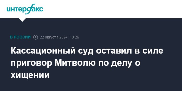 Кассационный суд оставил в силе приговор Митволю по делу о хищении