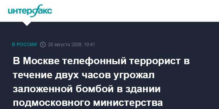 В Москве телефонный террорист в течение двух часов угрожал заложенной бомбой в здании подмосковного министерства