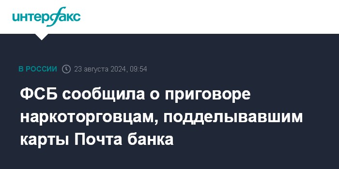 ФСБ сообщила о приговоре наркоторговцам, подделывавшим карты Почта банка