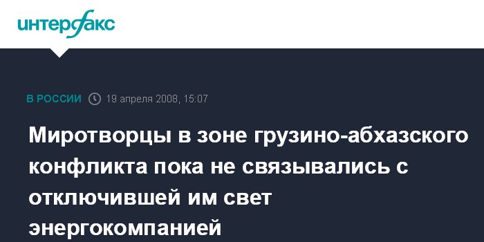 Накануне компания прекратила подачу электроэнергии всем российским миротворческим постам в зоне грузино-абхазского конфликта на подконтрольной центральным властям Грузии территории, а также штабу миротворцев в селе Урта Зугдидского района.
