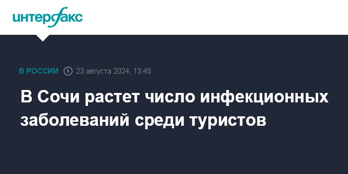 Москва. 23 августа. INTERFAX.RU - В Сочи усиливают меры профилактики инфекционных заболеваний из-за роста числа жалоб туристов на симптомы кишечной инфекции, сообщили "Интерфаксу" в пресс-службе городской администрации.