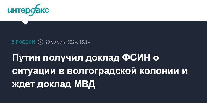 Путин получил доклад ФСИН о ситуации в волгоградской колонии и ждет доклад МВД