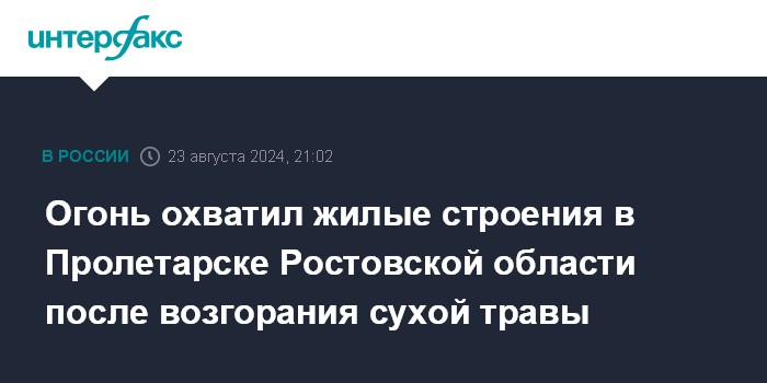Огонь охватил жилые строения в Пролетарске Ростовской области после возгорания сухой травы